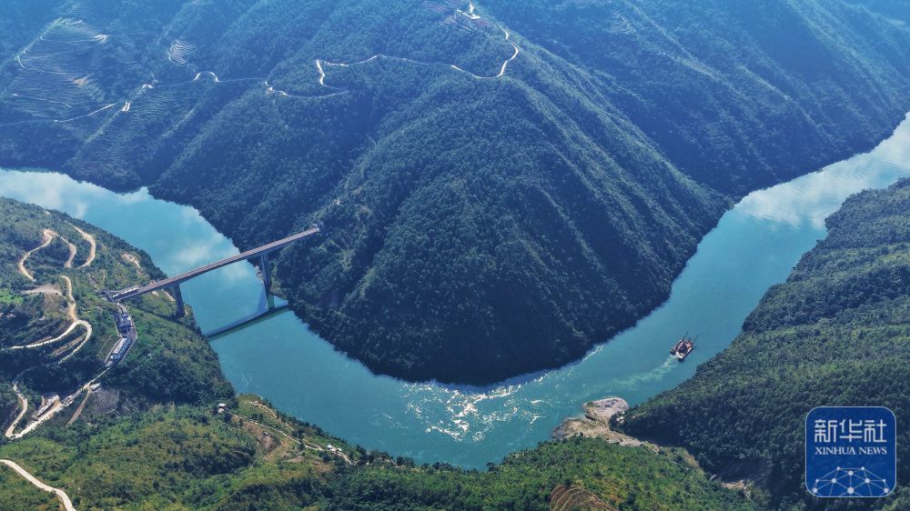 ^ 10月31日,澜沧江在科曼托站下熠熠生辉(航拍)。